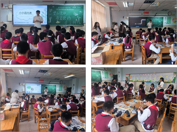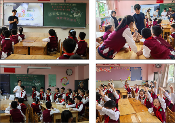 随后,我院本科生支部和研究生支部的30余名学生党员分别走进课堂,为不同年级的孩子们开展了形式多样、各具特色的科学实验活动。